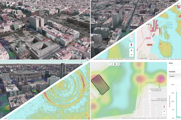 Análisis de datos geoespacioales visualizados sobre una gran variedad de tipos de mapa. Permite visualizar trayectorias, mapas de velocidades y mapas de densidad, combinando cualquier tipo de variable.