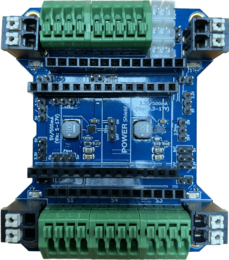 La plataforma HDUINO es un sistema de bajo consumo que dispone de una capa de gestión de potencia, integrando convertidores DC-DC de alta eficiencia y un cargador de baterías de litio de alta capacidad. Dispone además de un sistema de alimentación basado en energías renovables (placas solares), para la carga de sus baterías.